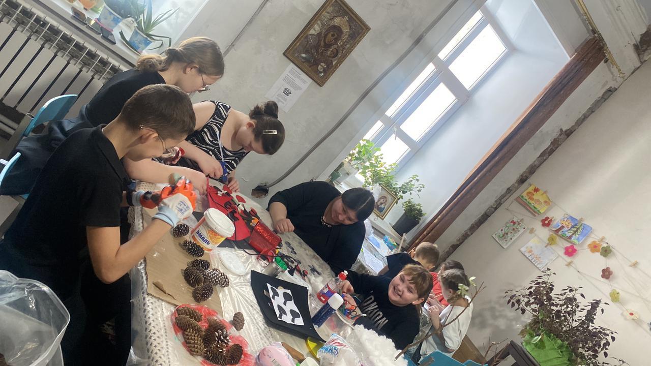 В преддверии светлого праздника Рождества Христова воспитанники воскресной школы приняли активное участие в благоукрашении своего храма. Юные прихожане с большим усердием и радостью подошли к этому благому делу, создавая особую праздничную атмосферу для прихожан. Дети с вдохновением развешивали гирлянды, устанавливали Рождественский вертеп, украшали елку и другие элементы интерьера храма, наполняя его светом и предвкушением праздника. Под руководством своих наставников они создали из бумаги, картона и других декоративных материалов рождественскую композицию, которой украсили церковный притвор и помещение воскресной школы. Их творческий вклад позволил преобразить пространство монастырского храма, сделав его еще более нарядным и торжественным к встрече одного из главных христианских праздников.