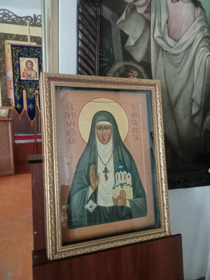 В начале января текущего года, благодаря помощи благодетелей, был изготовлен киот для иконы святой Елизаветы Федоровны Романовой. Икона святой преподобномученицы Елизаветы Федоровны, содержащая частичку от ее гроба, была подарена осенью 2025 года Иверско-Петропавловскому женскому монастырю митрополитом Астанайским и Казахстанским Александром. Важно отметить, что история женского монастыря на Костанайской земле неразрывно связана с именем святой великой княгини преподобномученицы Елизаветы Федоровны. Согласно историческим данным, в начале 20-го века великая княгиня Елизавета Федоровна, которая в то время была настоятельницей Марфо-Мариининской обители в Москве, оказала значительную поддержку монастырю в получении земельного участка для организации подсобного хозяйства. В течение долгого времени женский монастырь в Кустанае сталкивался с трудностями в решении вопроса о выделении земли, необходимой для ведения сельского хозяйства, в частности, для хлебопашества и сенокосов. Не решался этот вопрос и на уровне министерств и ведомств Российской империи, и только благодаря личному обращению настоятельницы Кустанайской обители, игуменьи Анны, в 1913 году непосредственно в канцелярию великой княгини Елизаветы Федоровны в г. Санкт-Петербурге, удалось разрешить эту проблему. Удивительно, но уже на следующий день после обращения в канцелярию великой княгини вопрос о выделении земли для монастыря был решен положительно. В результате монастырю был предоставлен значительный участок земли в районе монастырской заимки, которая ныне известна как поселок Октябрьский. Однако после Октябрьской Революции 1918 года монастырь в Кустанае был закрыт, и многие насельницы обители подверглись репрессиям и гонениям. Лишь спустя столетие, в 2024 году, монастырь был возрожден на месте бывшего монастырского подворья в поселке Октябрьский. Важно также упомянуть, что сама великая княгиня Елизавета Федоровна также пострадала за свою веру во Христа. В 1918 году она была арестована и в ночь на 18 июля того же года была убита. Еще живой ее сбросили в Новую Селимскую шахту, расположенную в 18 километрах от Алапаевска. Шахту впоследствии взорвали гранатами, завалили брёвнами и засыпали землёй, чтобы скрыть следы преступления. Однако отступающая Белая Армия смогла вывезти останки великой княгини Елизаветы Федоровны на Святую Землю, где мученица была погребена в усыпальнице храма святой Марии Магдалины, находящегося в Гефсимании. В 1992 году великая княгиня Елизавета Федоровна была канонизирована Русской Православной Церковью в Лике святых как Преподобномученица.