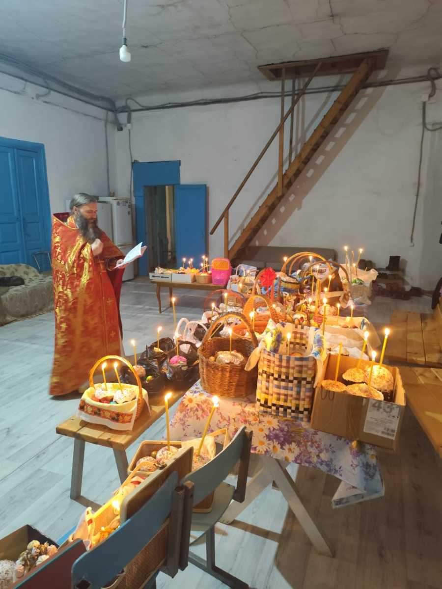 В завершении праздничной Литургии иеромонах Мефодий обратился к прихожанам с поздравительным словом, сердечно поздравив всех со светлым праздником Пасхи Христовой. В своём обращении он пожелал верующим духовной радости, мира в душе, крепости в вере, помощи Божией во всех добрых делах и благословения в повседневной жизни. Праздничное Богослужение завершилось общей радостью и пасхальным приветствием: «Христос Воскресе!» — «Воистину Воскресе!».